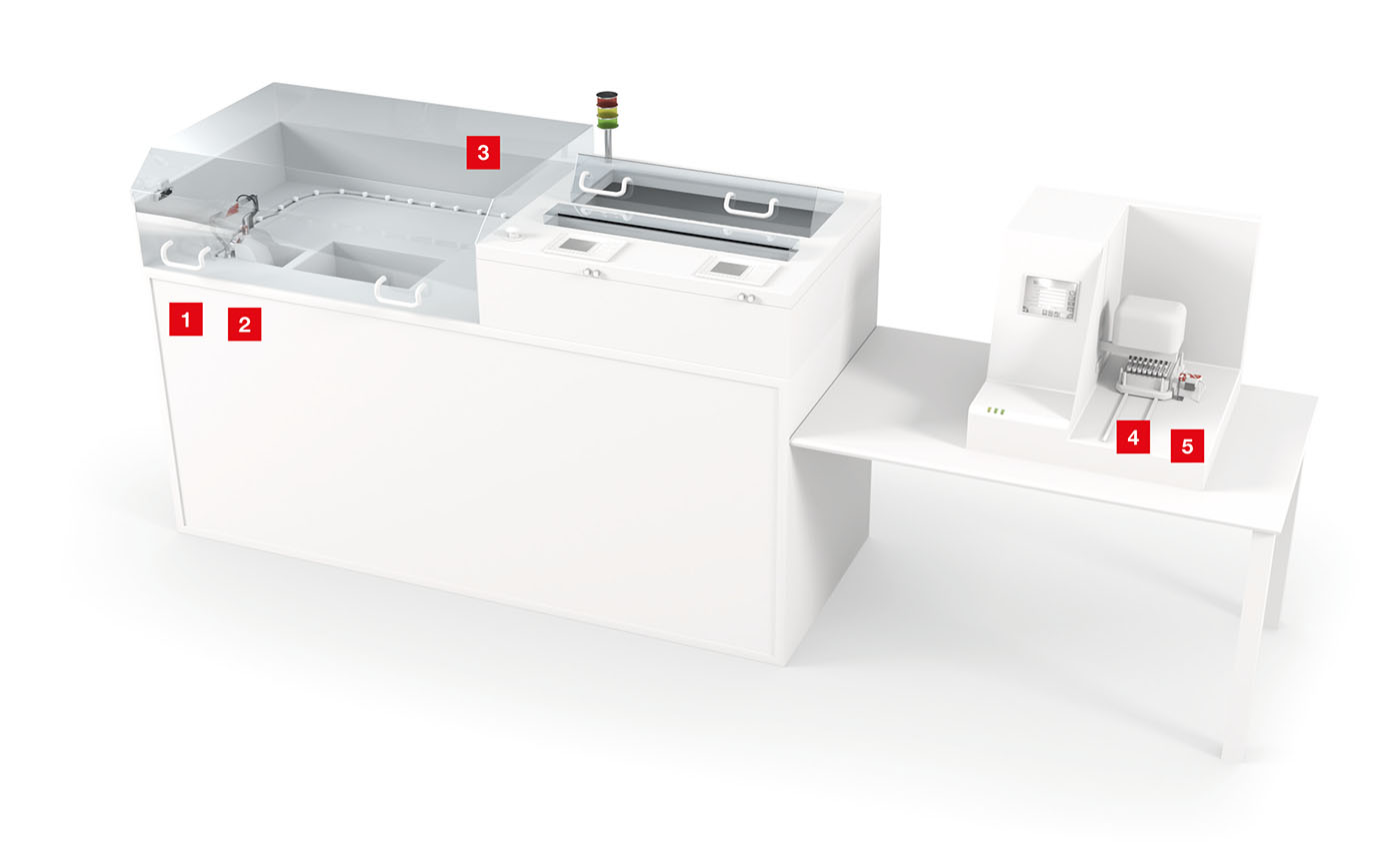 如今,用于检查体液或组织部位的现代化分析方法已经高度自动化,以便能够尽可能高效、安全地执行过程。在操作期间以及将样品分配给患者期间,零容错也至关重要。因此,使用的传感器必须可靠应对高处理量,同时还必须极其紧凑,以便在设备中占用尽可能小的空间。我们的条码阅读器可以针对试管等物品提供 80 mm 读取范围高度,以便能够在较短距离内可靠地进行检测。根据机器的位置和待分析的样品量,可以使用转盘、单通道、多通道或即时诊断解决方案。最高可靠性是我们用于实验室分析的传感器解决方案的最重要特征。我们的高性能 1D 或 2D 条码阅读器 DCR 50 和 DCR 80 是这些自动仪器的基本功能单元,因为它们必须绝对清晰地检测样品,以便能够正确分配分析结果。电容式传感器在分析自动化设备中用作预警系统,以保护流程并可靠地报告样品液体是否意外泄漏。我们的 CSL 光幕可以保护机器内部并防止例如篡改样品。