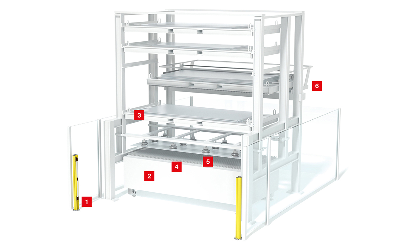 为了避免在存储和提取过程中与载货台发生碰撞,应检查板材是否突出在装载区域。为能可靠识别即使是轻微扭曲的板材,应在多个点上进行检查。