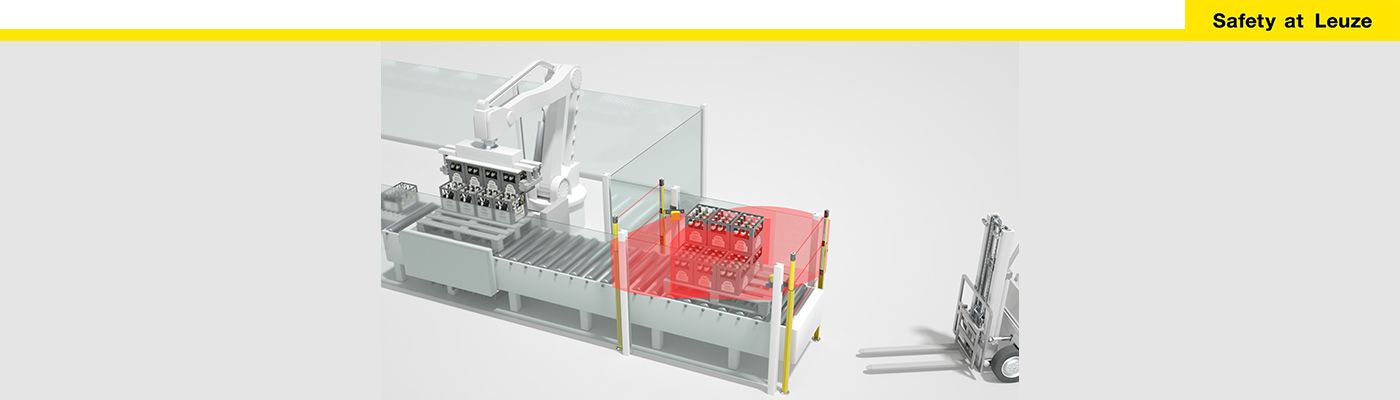 输送路线的装载区域通过多光束安全光栅在入口和出口侧受到保护。通过安全雷达传感器监控光栅之间的区域是否有人。